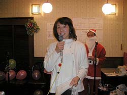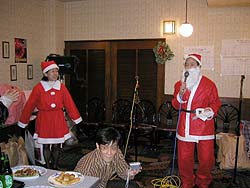松下サンタさんの開会宣言で夜の部はじまり。松原さん、NGです。 |