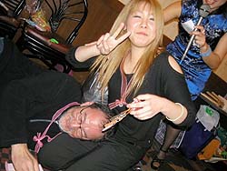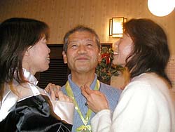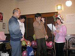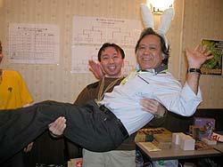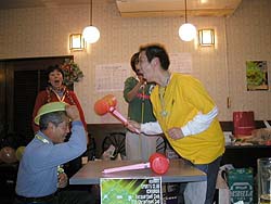 「じゃんけん」ゲームでは、及川さんがやる気丸出し。後ろで驚いている川端さんにも注目。今日はバッチリお化粧をきめて登場。これもコスプレ?(Dおじさん談) |