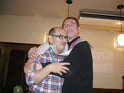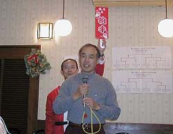 最後に、めでたくおじいさんになった木村さんより三本締め。 みんな豪華賞品をたくさんゲットし、余った料理も家へのお土産に折り詰めにして、三々五々に家路へ。 来年もよろしくね。「ラケットボールは楽しいな♪いくつになっても楽しいな♪」。。。 |