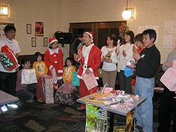 恒例のプレゼント交換。みんな期待通りのプレゼントをゲットできましたか? ところで、私のアフタヌーン・ティーで買った花びらのバス・エッセンスは誰の手に渡ったのでしょうか? |