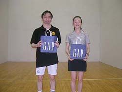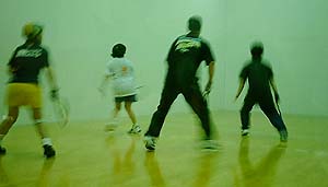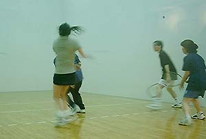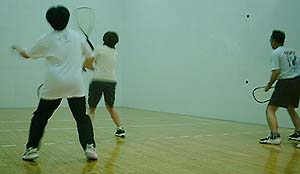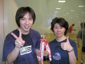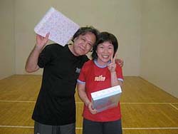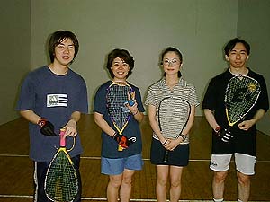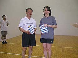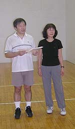 また今回参加の女性は、Beautiful&Powerfulなショットの持ち主が多く、スパーンとした歯切れのいいPlayでギャラリーも大いに盛り上がりました。一方男性は、皆様ご承知の通り、まっすぐのボールを打つ人は少なく、コートの壁を十二分に利用して、目くらましショットを織り交ぜ、それぞれの個性を十分に発揮したPlayで観客を沸かせました。 ちなみに四ツ谷Pの選んだ本日のいい音(もちろんショットの音です)Best3(順不同)は、浅利さん(スパ白金)・松永ハニーさん(コナミ津田沼)・川端さん(ルネ千葉)でした。 |