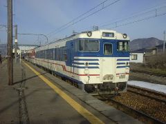20分ほどさらにご乗車いただき余目(あまるめ)駅から本日のハイライトであります奥の細道最上川ラインに乗換となります。