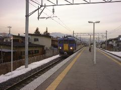 終点の山形新幹線終点の新庄です。突如無機質で巨大な新幹線が現れ圧倒されてしまいます。気をとりなおして、そば街道でお昼としましょう。