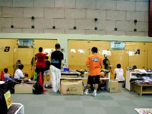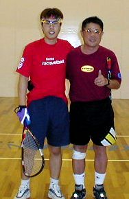 あ、忘れていました。韓国のKimさんとの試合がありました。 グリーンの中嶋支配人によると韓国ラケット協会はこの大会の優勝にやる気十分で、腕利きを派遣してきたそうです。Kimさんは今回来日の韓国選手の#2だそうです。 1セットめで0-14になったときは1点もとれないかと不安がよぎりましたが、フォアが少し弱めなのがわかりましたので、なんとか合計8点とらせていただきました。 |