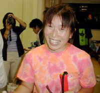 宴会編・お試し版 2001年8月4日(土)ゴールドジム横浜馬車道 (11点ラリーポイント) ![]() ![]() (左)文体研究会はBB町田「ビアビア弾」チームと対戦です。 初戦は、きじくんvsほーくです。ラリーポイントは怖いです。なんと11-9で文体勝ち。 (右)初戦取りこぼしにキャプテンは負けられない。 ウオームアップに熱が入ります。 ![]() ![]() (左)記念撮影から拳に力が入ります。 しかしラリーポイントは本当に怖い。いやらしーショットで11-9で文体逆転勝ち。 (右)【タイトル】いらっしゃいませ【 名前 】sin【 日付 】2001/08/04 15:44:34 ただいま、EAST CUPを抜け出して会社におります。とっちょトラブル発生したけど、うまいことやってOKになりました。「サーブはきちんと入らんけど、仕事はきちんとこなす」社会人の鑑です!これから、GGYにもどってコンソレ出場します。・・・・おいおい、着いたのはこのダブルス開始直前でした。ウオームアップなしが良かったのかサーブもきちんと入りました。11-9文体驚きの3連勝。 (無断引用お許し下さいませ)m(_ _)m ![]() ![]() ![]() うふ@デンジャラスは「おおつマンボウ」と対戦。 ちゃこ・一杯ひっかけて初勝利。チームも30-26で勝ちました。 本当に泣いてないの?