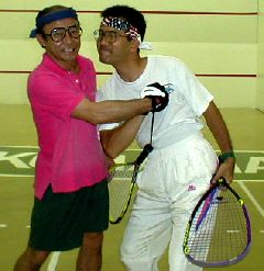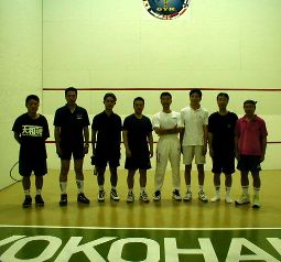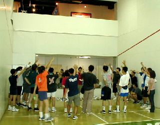 横浜・馬車道は食べ物が美味しい、雰囲気が良いなど 馬車道スポーティングハウス時代から多くのラケットボーラーを 楽しませてくれました。チームでワイワイ楽しみながらラケットできる ので応募チームは事務局予想の18組に応募はなんと42組! 全日本シニアに続き冷房が効かなくなるほどの熱戦となりました。 ↓大ジャンケン大会(混乱を避けるためチームキャプテンのみ)↓