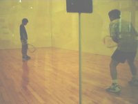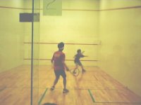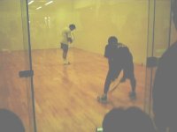 右隣の1面はバックウオールを前に動かしてスカッシュコートになっています。今はないドウ、SWEATと同じPearson製の定評のコートです。