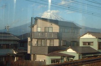 富士-富士川駅間では素晴らしい富士山が見えました。しかしシャッターを切った瞬間に民家にかぶってしまいました。