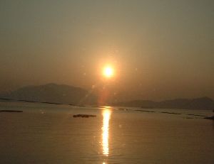 京都駅からは夜行列車となります。朝日に目覚めるともう山口県です。(防府-富海駅間)
