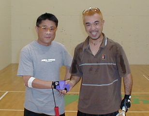 試合は浪速のムードメーカー・ASPの吉村さんとです。無事に終わり、左のアジアカップと記念撮影です。肩の荷が下りました。