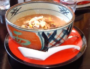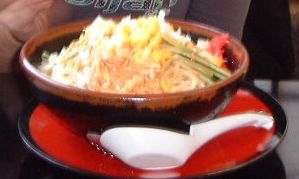 DASHで挨拶をしてからDARA-YOSSYお気に入りのごまラーメンを昼食とすることにしました。神原さんはごまだれ味ささみ付き山盛麺の冷やしラーメン、Yossy、Kossyはノーマルラーメン(Kossyは辛み抜きオプション)ほーくはコシヒカリ付きチャーシューメンをオーダーしました。口中に残るつゆの辛みがくせになり、最後まで飲み干してしまいます。