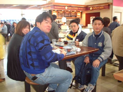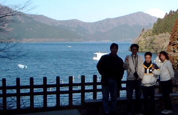 肋骨痛、ひじ痛、職場の精神的苦痛、メール中毒、モー娘通でラケットに身が入らない5名は木曜深夜のデニーズのYossy情報により「突然・温泉行っちゃおう」ツアーを決行しました。A-lieさんの愛車で出発。順調に目指す箱根に到着しました。おっとここでYossy幹事の顔色が右の芦ノ湖のように蒼い・・・・、絶え間なく届く携帯メールを返して下を見ているうちに酔ってしまったようです。