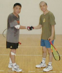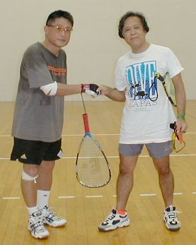 月1ラダー復活第2弾を大沢さんにお願いして対戦しました。 拾い負けしなければチャンスはあるかも…と思いましたが、甘かったようです。1セット目はぼろぼろでしたが2セット目は自分なりにゲームを組み立て直して頑張ったつもりです。終了後に「大沢さんよりスピード、粘り、ショットセレクション全てにおいて勝るモノがひとつもないのに挑むなんて。」とある方から厳しいお言葉を頂きました。その言葉通り何か「売り」になるものを自己探求して自信と実力をつけて再戦させて頂きたいと思います。ありがとうございました。 ![]() #11(2002/09/15)関東シングルスは全日本予選なので迷惑をかけてはいけないと思いまして、会場での取材を自粛いたしました。対戦相手のホームでしかも左右透明のセンターコート、DEFも考えましたが泥沼流らしくないので頑張って出場しました。ボールが見えにくく、最後に壁ぎりぎりのロブサーブが通用したので同点に追いついたところまで行きましたが、気づくのが遅すぎましたです。 ![]() ![]() ![]() ![]() #10(2002/08/31)10月1日にコナ津とコナミ市川の親会社が合併します。コナミ千葉ネット会員は先行して両クラブを無料利用できましたが、8月1日から法人会員も利用可能になりました。久しぶりに行ったコナミ市川はフロントが地下に移動していたり、マシンジムが広くなってたり随分使いやすくなっていました。ジャパンオープンBクラスで優勝・準優勝の2度入賞の記録をもつ末富さんもごひいきにしているそうです。コナミスポーツの積極的な新店舗開店はめざましいですが、ラケットコートのあるクラブの方が楽しいですね。コナミ市川のみなさん、また誘って下さい。ありがとうございました。