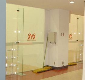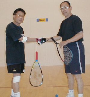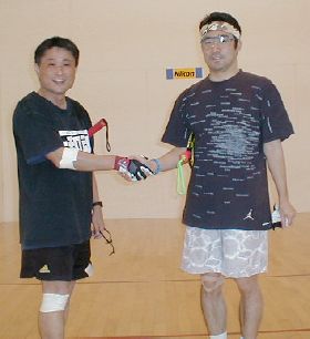 大阪で行われたジャパンオープン1998の会場になっただけあってすごく綺麗なコートのようです。9:30より使用開始とのことで残念ながら打つことはできませんでしたが、会員さんの努力でコート2面を存続できたそうです。7月28日にはイーフォースの東さんを招いて会員さんのダブルス大会をされるそうですが、頑張っていただきたいものです。