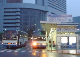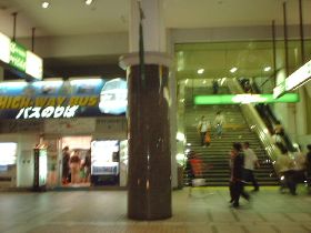 蒸し暑い新宿駅南口の片隅にハイウエイバス乗場入口があります。