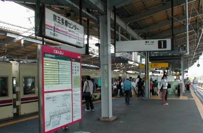 小田急と共同駅で合わせて2社で4ホーム8番線の多摩ニュータウン表玄関駅です。京王プラザホテル、三越など都内の一流施設も進出しているかと思えば、サンリオピューロ遊園地やギリシャ調建築のパルテノン多摩など駅前は施設がてんこもり状態です。