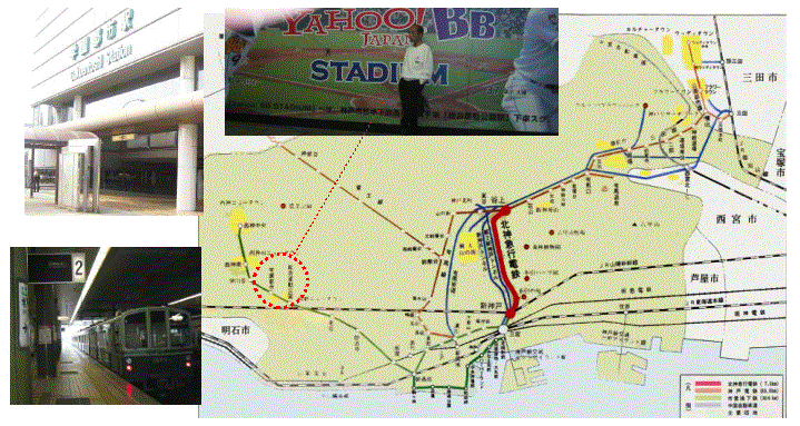 (来年よりバッファローズ)のホーム・ヤフーBBスタジアムのある総合運動公園駅の次の駅です。