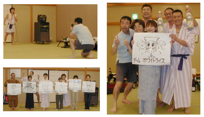ダッシュ吉川・仁多見コーチの司会で宴も佳境に達し、恒例の似顔絵!!今回の御題は「忍者ハットリくん」