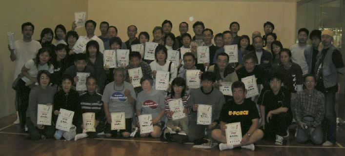 #9(04/08/07) DASHトリオのコナ津遠征 DASHのkotakkyさんから、「そろそろダイヤルアップは卒業したら」とアドバイスいただきました。そこで相当遅ればせながらADSLやBフレッツ検討・導入にこの1ヶ月間浸っていました。(Bフレッツの光ファイバ工事は11月なのでADSLにやむなく決定!)しかし佐倉電話局からの直線距離は2kmなのに迂回した道を電話線通しているため、なんと5km以上距離となりADSL業者さんも音を上げる通信エラー頻発状況となりました。でもダイヤルアップに比べれば圧倒的に速くなりました。モデムのADSLランプが消えないことを祈りながらメール受信、HPチェックしています。 さてDASHの板さん・JIRO・Takky(写真前列左から2-4人目)が8/7にコナ津にいらっしゃいました。マスターズでいろいろお世話になったのでコナ市フェニックスのマスターズメンバーも忙しい中駆けつけていただきました。この週末(9/26)、ヨッスイ団長以下コナ津5名がDASH大会に参加し、DASHの皆様も大歓迎で準備いただいているとのこと。楽しんできてね。