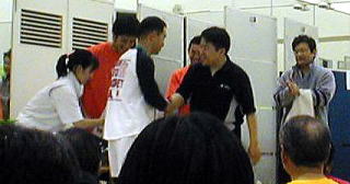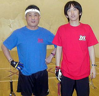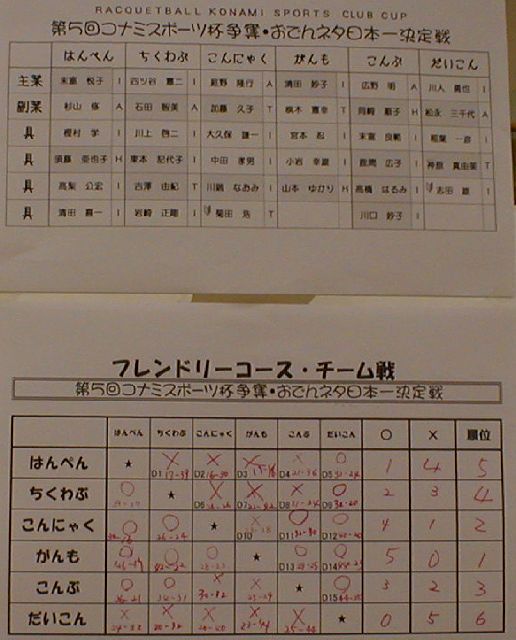 06/11/26 Sadakoも行く2006〜(&ほーく) ピントもずれるし色も可笑しい。 ハムの優勝した野球版より早くスタートしたラケットボールのコナミカップsince2002、今年も盛大に行われたそうですね。新たにコナミチャンプを決めるチャンピオンコースと親睦団体戦のフレンドリーコース、コナミ社より有名携帯音楽プレイヤーの大量協賛もあり、大満足な一日だったそうです。来年には関東だけでなく守口や川西緑台も巻き込むイベントになりそうです。 ![]() ![]() ![]() フレンドリーコース優勝と男子チャンプコース上位の方々。女子はシャッターチャンス逃しました・・・・ #7(06/11/19) 「ソウルから寺尾まで」親善に貢献している川口はるみさんから「まつばらMIXダブルスフェスタ」の懇親パーティ写真集が届きました。ドローによるとトッププレーヤーから懐かしの名選手まで豪華な顔ぶれだったようです。先日コムズに招待していただきました。(体験利用で本当に無料でした。)グンゼスポーツとの提携うまくいっているようで良かったです。 ![]() ![]() #6(06/10/28)コナミ津田沼ドランカーズ20回レポート 2002年よりご無沙汰しておりましたが幹事さんの熱烈なお誘いを受けて参加いたしました。今回は初心者の方が9名参加し30名とご盛況で何よりです。気が付いてみると参加者の最年長になっておりました。でも2試合ともタイブレギリギリ勝負で各1時間近くになってしまいした。マスターズ15分制限ルールに慣れていたためとってもこんな長い試合はとってもキツかったです。おじさん、初心者も参加しやすいような工夫をしてご盛況を次回以降も続けられるといいですね。幹事さん、いろいろお手数かけました。ありがとうございます。 ![]() ![]() ![]() ![]() 久々に参加した感想としては、コナミ津田沼は改めて恵まれた環境にあると感じました。JR、京成、新京成乗換駅と立地が良く学生からアクティブシニアまで広い世代がラケットボールを楽しんでいます。逆に言うとこの大会に参加しないメンバさんも多く、コートが使えなくなることへの不満が出やすい問題もあるようです。環境の悪化に苦しむ他クラブさんの1割くらい、普段から参加しないメンバさんへの働きかけを行えば、その方々の参加者増加や大会容認世論が形成され30回大会も夢ではないと思います。 ![]() ![]() #5(06/7/01-02)新潟マスターズ2006 ドイツではブラジルが・イングランドがまさかのワールドカップ準々決勝敗退で世界中が熱く暑い2日だったときに新潟へまた帰ってきましたヨ。2002年はアイルランドサポーターから帽子を買ってあげたことを思い出します。今年はダッシュメンバさんのご好意でサンピア新潟に泊まらせていただけました。恒例のお題は「モナリザ」。2名の力作が僅差でした。運営委員会の皆さんご苦労さまでした。ダッシュ同好会の皆様、次のワールドカップまでよろしくお願いします。 試合形式と結果 ![]() ![]() ![]() ![]() ![]() #4(06/5/29)越後のYossy&Hachiさん来津 ![]() ![]() 貴重な日月連休を利用してディズニー三昧だそうです。うらやまピー(^o^)。マスターズよろしくお願いします。ダービーも当てたそうで新婚さん絶好調です。 #3(06/5/28)腱断裂体験記 ![]() ![]() 幸いにも腱接合を祈る状態からリハビリ状態へ帰還することができました。右手小指伸筋の部分断裂です。 この傷害の難しいところは痛みが全くないところで痛みが出たときには手遅れだというところです。 小指が第一関節から動かなくなって痛みがないので有休とってまで行くこともないやと湿布だけで治るだろうとタカをくくってました。 しかし念のため診てもらったらというアドバイスで、内科のついでに時間がとれたので、同じ病院の整形外科に診てもらったら「最悪は手術、全身麻酔だから入院4日は必要」と言われ、急に不安の底にたたきおとされました。 常勤の先生のいない時間だったので不安感を増長させる説明をする医師に当たってしまった不運もありますが・・・。 今回のアップで良い病院ないか検索したら、治った今、皮肉にも在住の佐倉市で見つかりました。混んでるのでここは有名です。ただし記事にはこうありますが、しかし最初に診てもらった不安増長医師氏もこの記事にでてくるN医大派遣なので患者側も理論武装して治療方針きめないと、「記事と違うじゃないか」となりそうな気がしました~_~;) 幸いにも完全断裂ではなかったようで(腱は骨折と違いレントゲンでつながってるのか、切れてるのか、切れそうなのかはさっきの病院のようにMRIのような1億円以上する装置の治療ノウハウある整形外科へ行く必要あり)6日固定で済みましたが、アキレス腱断裂などで苦労された方々のご苦労を窺い知ることができた貴重な2週間の体験でありました。 #2(06/4/23)花木チャンプの里帰り