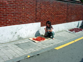 まだ暑いこの時期からキムチの準備でしょうか?唐辛子を天日で干しています。マツケンも来るのはこの懐かしい趣きが誘うのでしょうね。