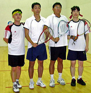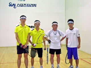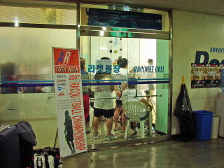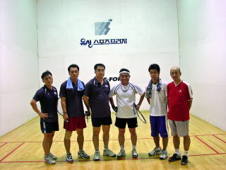 大会会場は地下に4面のRBコート、1Fにボーリング場、3Fにプールを有する高級スポーツクラブでした。オープンクラスの優勝カップには第1回優勝団体の名前が付けれています。「神戸YMCA」、「紀尾井町」、「ドウ」、「レヴァン」・・・と懐かしい名前があります。最近の男子は残念ながらハングルで書かれたチームばかりになってしまいました。