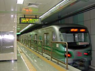 翌朝は早く起きて地下鉄でテグ市内を散策しました。4年前に200人が火災で死んだとは思えないくらい綺麗な電車(Youtube)でした。国際スポーツ大会の誘致に熱心で2003年のユニバーシアード、今年のラケットボール?、4年後の世界陸上、と目白押しです。早朝から市民がウォーキングとスポーツ好きな街でした。