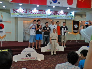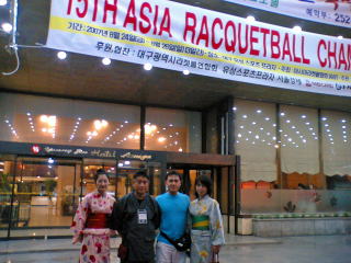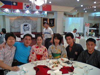 悟りを開く前に山登りでクタクタ。これだったら試合の方が楽だったかも・・・。表彰式は開会式と同じホテルの大広間で行われました。日本風の服装をした我々は大人気。日韓交流にお役に立てたようです。
