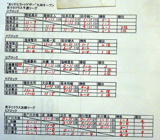 男子Bクラス予選リーグ・Cクラス決勝リーグ結果