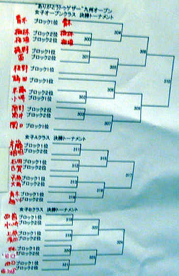 女子オープン・A・Bクラス決勝トーナメント組み合わせ