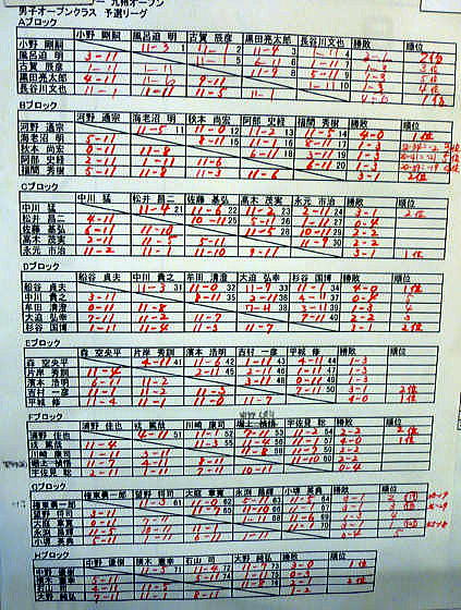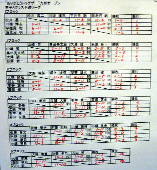 男子オープン&Aクラス決勝トーナメント組み合わせ