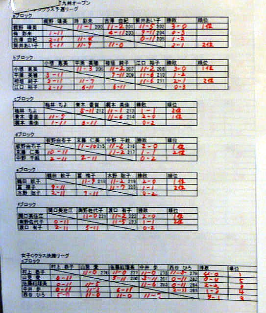 女子オープン予選リーグ&Cクラス決勝リーグ結果