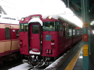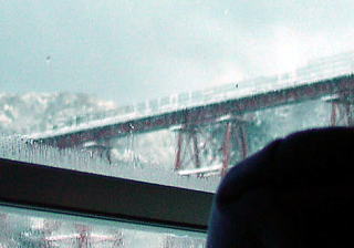 #1(08/01/01) 163D・餘部鉄橋、元旦豪雪、脱出大作戦にまきこまれるの記(鉄分多し注意) 京都から鳥取を経由して出雲へむかっていました。電車は城崎温泉でなくなり、ディーゼルカーとなります。降雪のため、乗り換えが難しいので163D始発駅の豊岡駅で乗り換えることにしました。鳥取からの雪で遅れた列車を待ち、5分遅れで出発しました。雪は進むごとに強まり、鳥取方面の列車を待機し、遅れは増えていきます。