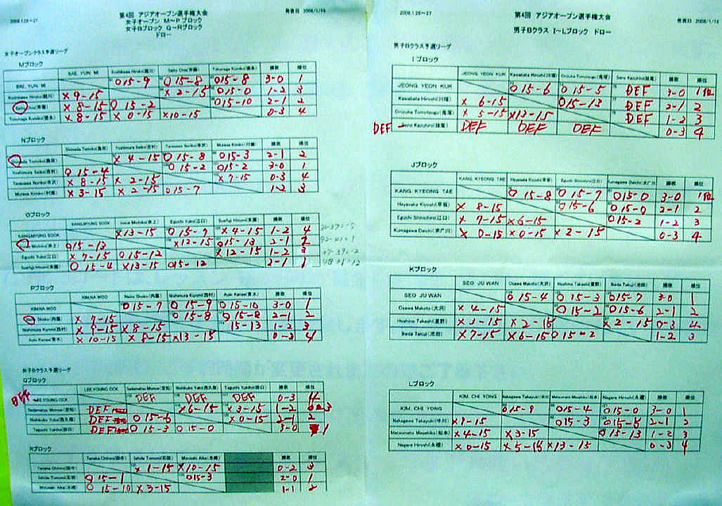 09/1/03 Sadakoも行く2008〜(&ほーく) ピントもずれるし色も可笑しい。 Phoenix共通レポートはここをクリックしてください。 台湾旅行に興味のある人はこちらの台北ー高雄2往復紀行をクリックしてください。 #14(08/12/23) コナミカップ7th 今年はマスターズと重ならないようにしたために1ヶ月遅れました。トーナメントクラスがダブルエントリーできるようになったので真剣勝負も楽しむことができました。Phoenix共通レポートはここをクリックしてください。 #13(08/11/03)第24回 エクザス・ドランカーズカップ エクザスという名前が許されている由緒ある大会です。(単にファイルを直し忘れているだけかも) 決勝、集合写真、宴の写真はここをクリックしてください。 ![]() ![]() ![]() ![]() Aクラス結果 Bクラス結果 Cクラス結果 Dクラス結果 ![]() ![]() 泥沼さん的には3週間前のラダーで体調不良になってしまい、1週間安静にして再調整しましたが無念の最下位でした。レコーディングダイエットが上手く行っているので動きが楽になり、セットポイントはとれてるんですけどねえ。恒例の入れ替え戦が遅れのためできなかったため、来週はBチャンプとのラダーです。 #12(08/08/30)コナミスポーツ市川&津田沼 Welcome ラケットボール Festa! Phoenix・いつ最共通レポートはここをクリックしてください。 ![]() ![]() N村さんと写るなんて最初で最後かもしれない・・・。 鶴岡マスターズはキャンセルしないでね! #11(08/08/24) ワールドゲームス2009と世界選手権2010のポータブルコート パクさんからコートの写真が送られてきました。(12枚目と16枚目がよくわかります)ショッピングセンターのテラスでやってますね!面白いアイデアです。日本はサンピアがなくなったら大会用に貸してもらわなければならないかも?でも建設費と同じくらいかかるかもしれないそうです。KRFは何かソリューションを見つけたのか今度会ったときにきいてみましょう。 (朴さんのコメント原文より) The first portable court in Asia has been successfully tested last weekend at the first IRT Satelite in Seoul, Korea. The court will be the new marketing tool for Racquetball in Korea and in Asia in general. It will also be shipped to Taiwan next year for the World Games 2009. アジア初めての移動式コートのテストがソウルの第1回IRTサテライトで成功しました。このコートは韓国およびアジアで共通のラケットボールの新しいマーケティングツールになる予定です。来年は2009ワールドゲームスのために台湾に運ばれます。 #10(08/07/17) ソンナム遠征 ソンナム遠征行ってきました。とてつもなく大きなところにすごいコートです。レポートはここをクリックしてください。 韓国の物価は食事と交通が安くて、他は日本と同じなんですが、今回は博多から釜山への高速船をアップグレードしてみました。 飛行機のファースト並みの品質向上ですが、さすが韓国顧客の目が厳しいだけあり、たった¥3000です。 ![]() ![]() 今日のKTXチケットです。これも特室にアップグレードしてみました。新大阪−博多ぐらいの時間ですが、元々半額でさらに外国人だけが 買えるKR-PASS割引で\1000に下がってます。 このGwangmyeong(光明)駅からソンナム(城南)のタンチョン(炭川)スポーツコンプレックスに入りました。念願のKTXに乗りました。行きは特室が取れて天国のような車内でした。余裕ありありでYoutube撮影までしてしまいました。 しかし帰りは3連休前の混雑で通路に座って帰りました。 #9(08/07/27) 近況報告&ソンナム遠征with Red Heart 市川のHP協力が落ち着いてやっと更新できます。近況を手短にご報告すると、ドランカーズではなんとかavehiroさんとの70分の長い試合を勝てて最下位を免がれました。シェンカーさんに触発されて15年ぶりに管楽器も買いました。みなさんは5月連休からいかがでしたか? ![]() ![]() ![]() さてみなさん、そろそろお盆の計画、大詰めですね、私はまた韓国です。 去年のテグでのアジア選手権で現地案内してくれたパクさんがイントラしているスポーツクラブ、Tan-cheon sports complexにも寄れることになりました。 ![]() この炭川スポーツコンプレックスはソウル郊外40kmのベッドタウン城南(ソンナム)市にあり、昨年ACL準決勝で浦和レッズとPK戦までもつれて惜敗した城南一和のホームスタジアムで有名です。 ちょうど駒場競技場の横にスカッシュコートとラケットボールコートがあるような感じですね、楽しみです。 #8(08/05/06) 連休は釜山に行ってまいりました。今回は先月買ったデジカメ(LUMIX-DMC-FS2)に撮影機能が付いていたので撮ってYoutubeにアップしてしまいました。自画自賛ですが、結構いけてます。しかし初代CASIOに比べると機能アップは隔世の感です。それではどうぞ。 1.釜山タワーに上る途中で何かの音がきこえました。 ![]() 3.釜山地下鉄、中央洞駅にて ![]() 4.ロッテホテルにスカッシュコートを見つけました。 ![]() 5.帰りの博多はどんたく真っ盛りでした。 ![]() #7(08/04/05)