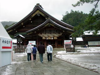 出雲大社の朝8時はみぞれまじりでした。人はまだ少なく厳かな雰囲気。 出雲そば黒埼で暖をとりました。とろろそば\600とそは焼酎お湯割り\450。 「ポプラ」。どてすじ煮込み\600と焼酎お湯割り\300。 同じく「ポプラ」かに汁定食\880.かに1匹の身が汁に沈んでました。