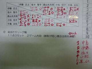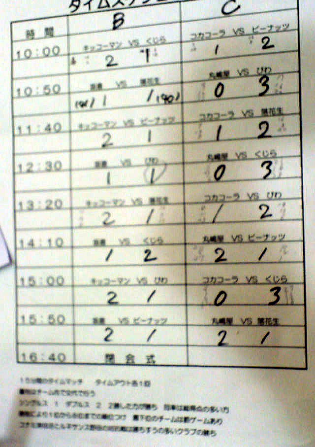 12/11/18 Sadakoも行く2012〜(&ほーく) ピントもずれるし色も可笑しい。 ![]() ![]() 開会式 Bクラス1回戦、T山さん ![]() ![]() Aクラス1回戦 ミサエさん前チャンプに勝利! Bクラス準決勝 ベテランM田さん ![]() ![]() Aクラス準決勝 Bクラス3位決定戦 ![]() ![]() Aクラス3位決定戦 Aクラス5位決定戦 ![]() ![]() Cクラス結果 Bクラス結果 ![]() ![]() Aクラス 準決勝までの結果 B−Cクラス入替戦 N島さん勝利! ![]() ![]() A−Bクラス入替戦、K林さん勝利! Aクラス決勝、ミサエさん勝利! ![]() ![]() Aクラスとレディースカップの2冠の偉業達成です ![]() ![]() 閉会式 ![]() ![]() ![]() ![]() チャンプがカップで勝利の美酒を味わってます。 ![]() ![]() さかなや道場の入り口で。 #2(12/5/26)第31回ドランカーズカップ ![]() ![]() ![]() ![]() ![]() Aクラス準決勝 Bクラス決勝 ![]() ![]() Aクラス3位決定戦(ベストマッチ) B・Cクラス入替戦 ![]() ![]() A・Bクラス入替戦 Aクラス結果 ![]() ![]() Bクラス結果 Cクラス結果 ![]() ![]() Aクラス決勝 ![]() ![]() レディスカップ獲得しました。 Cクラス優勝&準優勝 ![]() ![]() Bクラス優勝 Aクラス優勝&準優勝 ![]() ![]() ![]() RB担当はYコーチに代わりました ![]() ![]() ペア結成の握手です ベストマッチの発表です ![]() ![]() ![]() 32回は10月末の予定です。 #1(12/3/3)ルネ野田&コ津田同好会 6月にルネ野田が移転するそうですが新しいクラブにはRBコートが作られないそうです。交流会が開かれました。 ![]() ![]() ![]() 野田と津田沼で各4チームがそれぞれ相手の4チームとシングルス1、ダブルス2計3試合します。 ![]() ![]() ![]() ![]() ![]() ![]() ![]() ![]() ![]() ![]() ![]() ![]() ![]() ![]() ![]() ![]() ![]() ![]() ![]() ![]() ![]() ![]() ![]() ![]() ![]() ![]() ![]() ![]() ![]() ![]() ![]() ![]() ![]() ![]() ![]() ![]() ![]() ![]() ![]() ![]() ![]() ![]() ![]() ![]() ![]() ![]() ![]() ![]() ![]() ![]() ![]() ![]() ![]() ![]() ![]() ![]() ![]() ![]() ![]() ![]() 試合結果 ![]() ![]() ![]() ![]() ![]() ![]() ![]() ![]()