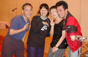 また右写真は、生takkyさんです。懇願のうえ(あっさり?)実現した”た”+”ま”+”ほーく”人文字です。