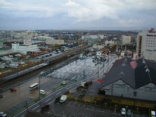 お風呂は10Fにあり、そこから鶴岡駅前と日本海を一望できます。
