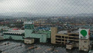 ダイエー2Fと歩道橋でつながっています。「歓迎マスターズ御一行様」の看板もあり準備は万端です。