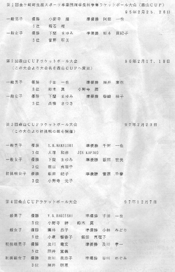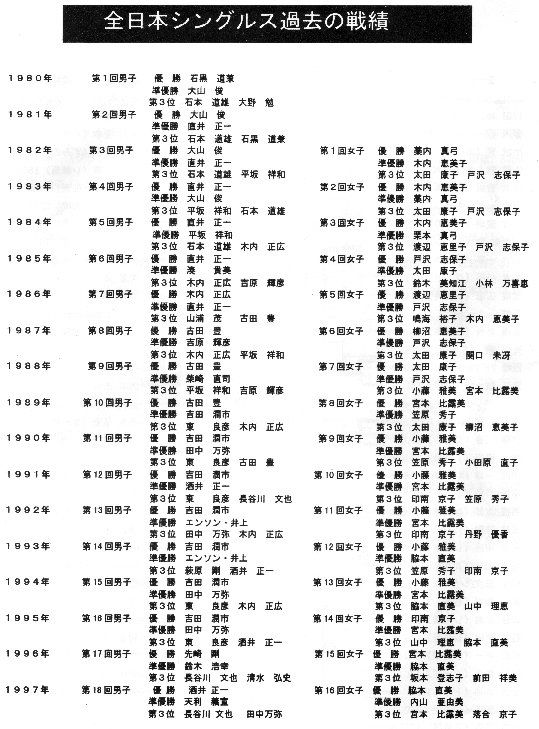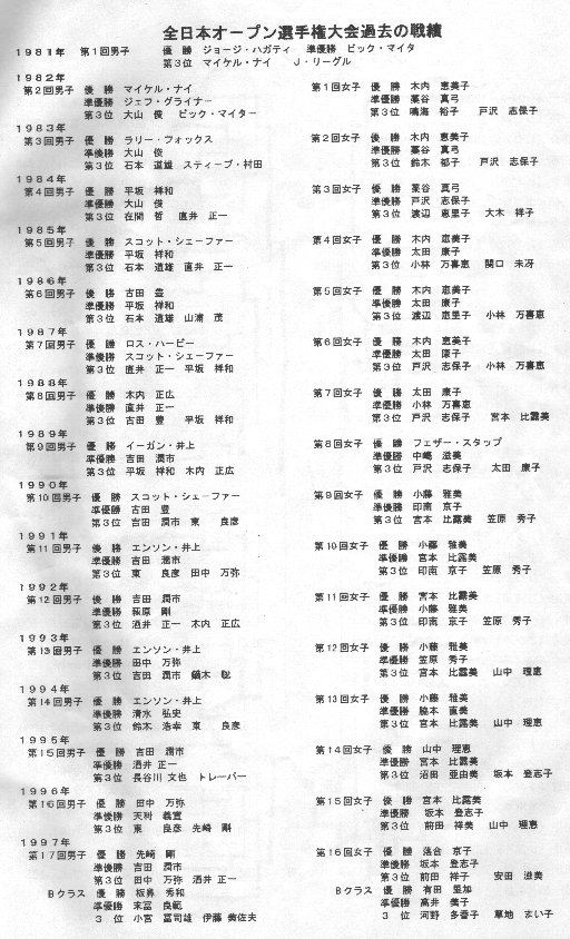 第1-17回男子(1981-1996)、第1-16回女子(1982-1996)入賞者 第17回男子(1997)オープンAブロック 男子Bブロック 男子B 第16回女子オープン 女子B