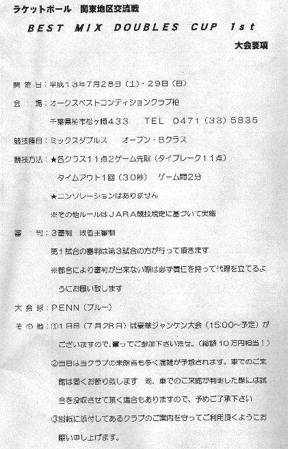 ベスト・ミックスダブルスカップ(2001年7月28・29日、オークス柏)