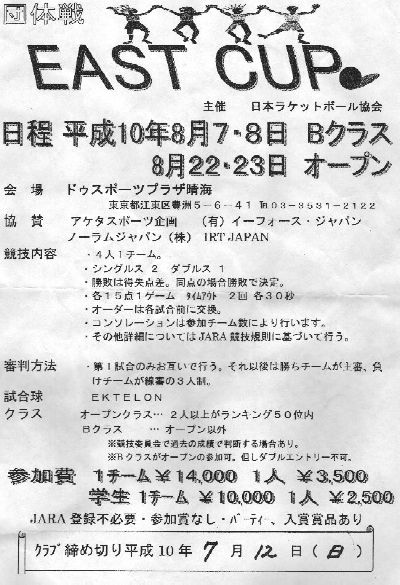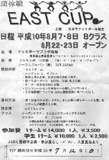 第4回団体戦EAST CUP(Bクラス2001年8月4・5日、GGY馬車道、YMCA東陽町)
