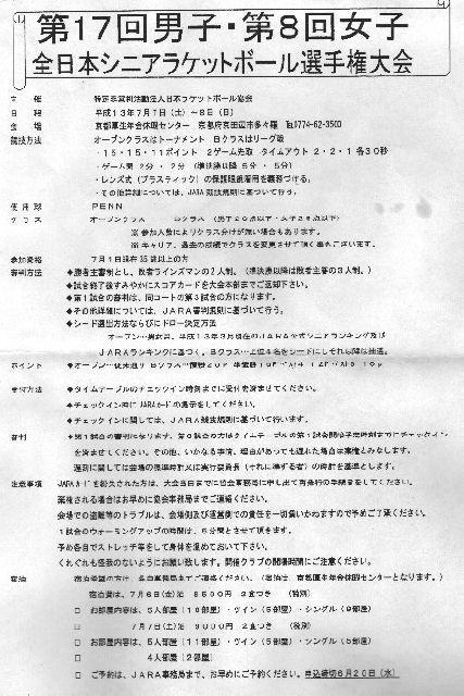 第17回全日本シニア選手権(2001年7月7・8日、京都厚生年金休暇センター(地図) 近鉄新田辺駅前バス時刻)