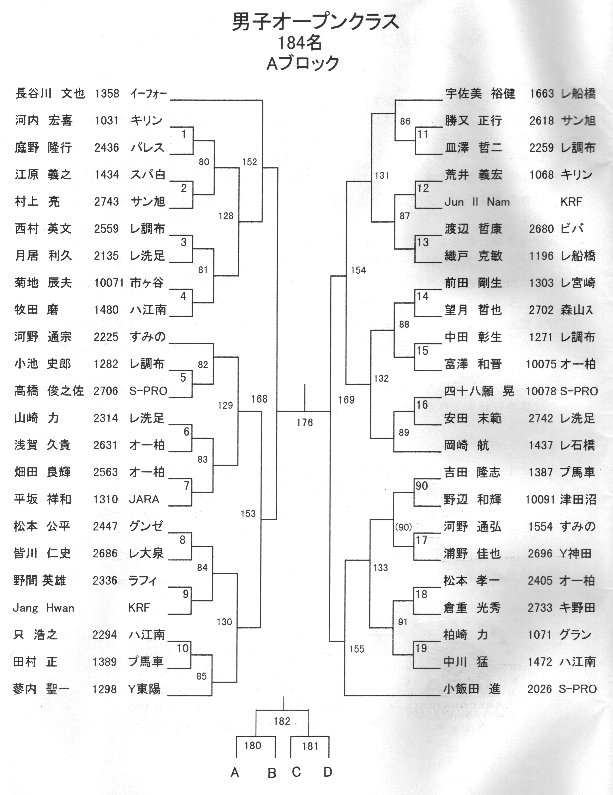第18回男子(1998)オープンAブロック 男子Bブロック