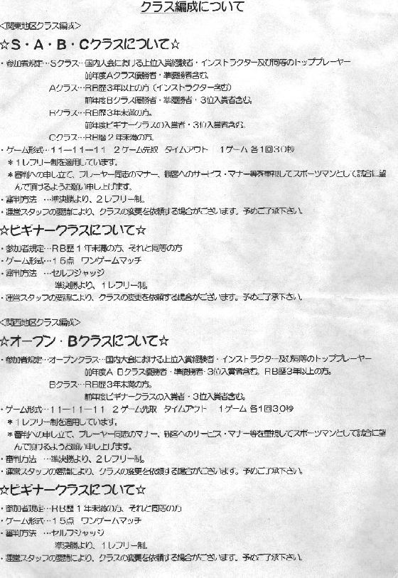第1回要項 男子B 女子B 男女オープン 第4回参加者、ドローと結果、タイムテーブル(JARA)