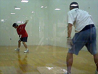 古くからのラケットボールファンなら皆ご存知のあの方が、久々に突然現れました。 ラケットボールをやりに、ではなく、ウォールハンドボールをやりに、です。 体型は多少変わったものの、相変わらずの野性味溢れるさわやかな笑顔は、当時のまんまです。 フロントのAちゃんが覚えていてくれたとのことで、すっかりご機嫌でした。