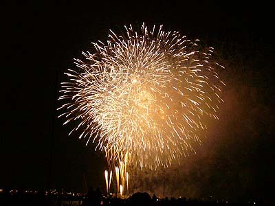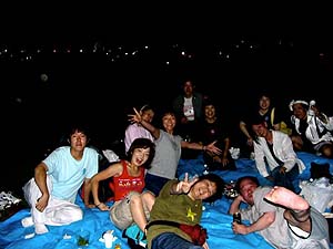 ラケットボール始めてまだ間もないのに、市川でのほとんどの行事には(飲みがメイン)図々しく参加させて頂いています斉藤です。8月2日(土)に行われた江戸川花火大会にも誘っていただきました。昼はしっかりRBで汗をかき、自転車にひかれそうになりながら延々と歩いて川原に着きました。川のすぐそばのいい場所には大きなシートが敷かれもう何人かの方々が飲んでいました。早い時間から場所取りをしてくれた岩上さん、ありがとうございました。そしていよいよ待望の花火が始まりましたが、飲みながら間近で見る花火の大きさとビールの旨さに感動しつつ、同時にコナミ市川からのあまりの遠さにもう二度と来ないと誓いました(笑)来年も是非行きたいです。ただ、トイレだけは近くのコンビニまで我慢しようと思います。トイレ付近の怪しい水溜まりに足をつっこみました。あの水溜まりの正体はいったい!? 恐くて臭いはかげませんでした。市川の方々のお陰でラケットの楽しさや難しさも沢山学んで、本当に感謝しています。これからも頑張って練習して上達したいと思ってますので宜しくお願いします。