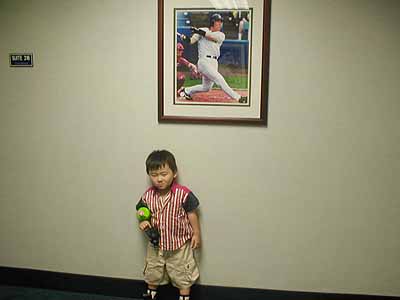 我が家の子供達はウロウロと歩き回りまた手当たり次第にフルーツやらお菓子を食べるので落ち着いて見る事は皆無でした。その日は松井も活躍してヒットも打ってゲームは勝ちました。 |