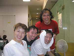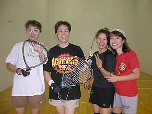 北海道から関口さんが帰ってくるのでラケットボールをやって、酒を飲もうと言うので参加しました。 まず、ラケットボールの方は、また人が集まってみんなたくさんプレーをするだろうから僕は適当やってあとはサボろうと思っていたのだが、結構休み無くやらされてしまい疲れました。もうラケットボールでお腹いっぱい。 次に、飲みの方ですが、韓国料理で、最初はチヂミで、これは良いと思っているとだんだんと辛くなっていき舌が麻痺しました。そのためビールをたくさん飲んでしまい、ビールでお腹いっぱい。 韓国料理も終わり、さあこれからと言う時に、おじさん、おばさん達は眠いと言って帰っていきました。みなさん遊びもラケットボールのようにがんばりましょう。 あっ!関口さんのことに全然触れていない! では最後に関口さんへ・・・適当にがんばって下さい。 最後に一言 |